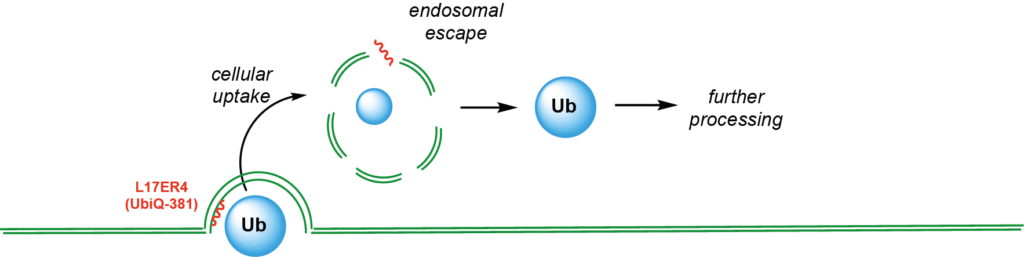 Here endosomolytic peptide L17ER4 (UbiQ-381) does not only provide cytosolic access to ubiquitin(-like) reagents but also allows functional incorporation of ubiquitin into endogenous proteins (Figure 1).